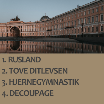 Du kan vælge at arbejde med Tove Ditlevsens liv og forfatterskab, blive klogere på Rusland og dets rolle i verden, styrke din hjerne med sansetræning og legende øvelser – eller lade fantasien folde sig ud i decoupage.